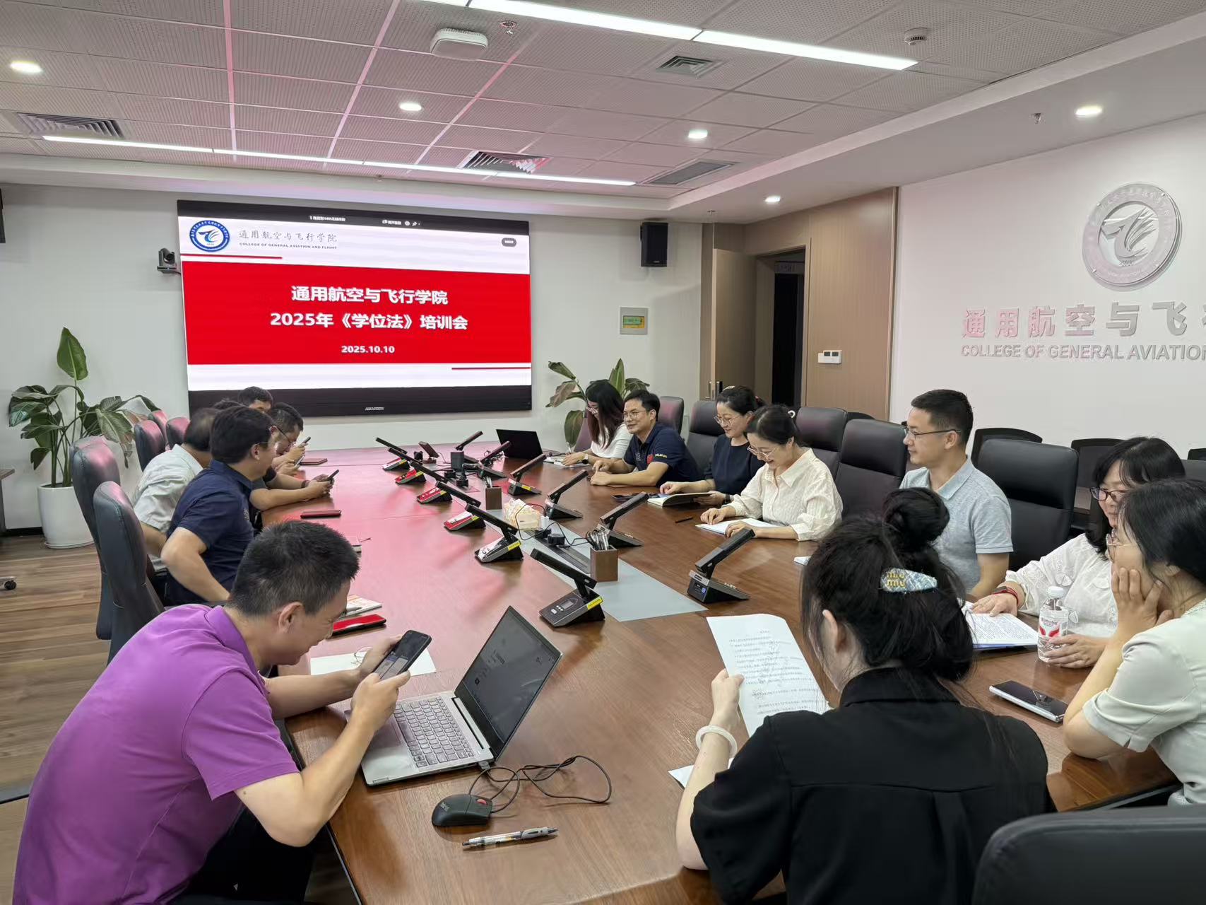 10 月 10 日下午,通用航空与飞行学院(以下简称 “通飞学院”)在尚德楼 E405 会议室举办《中华人民共和国学位法》(以下简称《学位法》)专题学习会。本次学习会以 “深入学习贯彻《学位法》,加快推动研究生教育高质量发展” 为主题,由学院副院长张洪海主讲,研究生导师参会,为学院进一步规范研究生培养流程、提升教育质量校准方向。