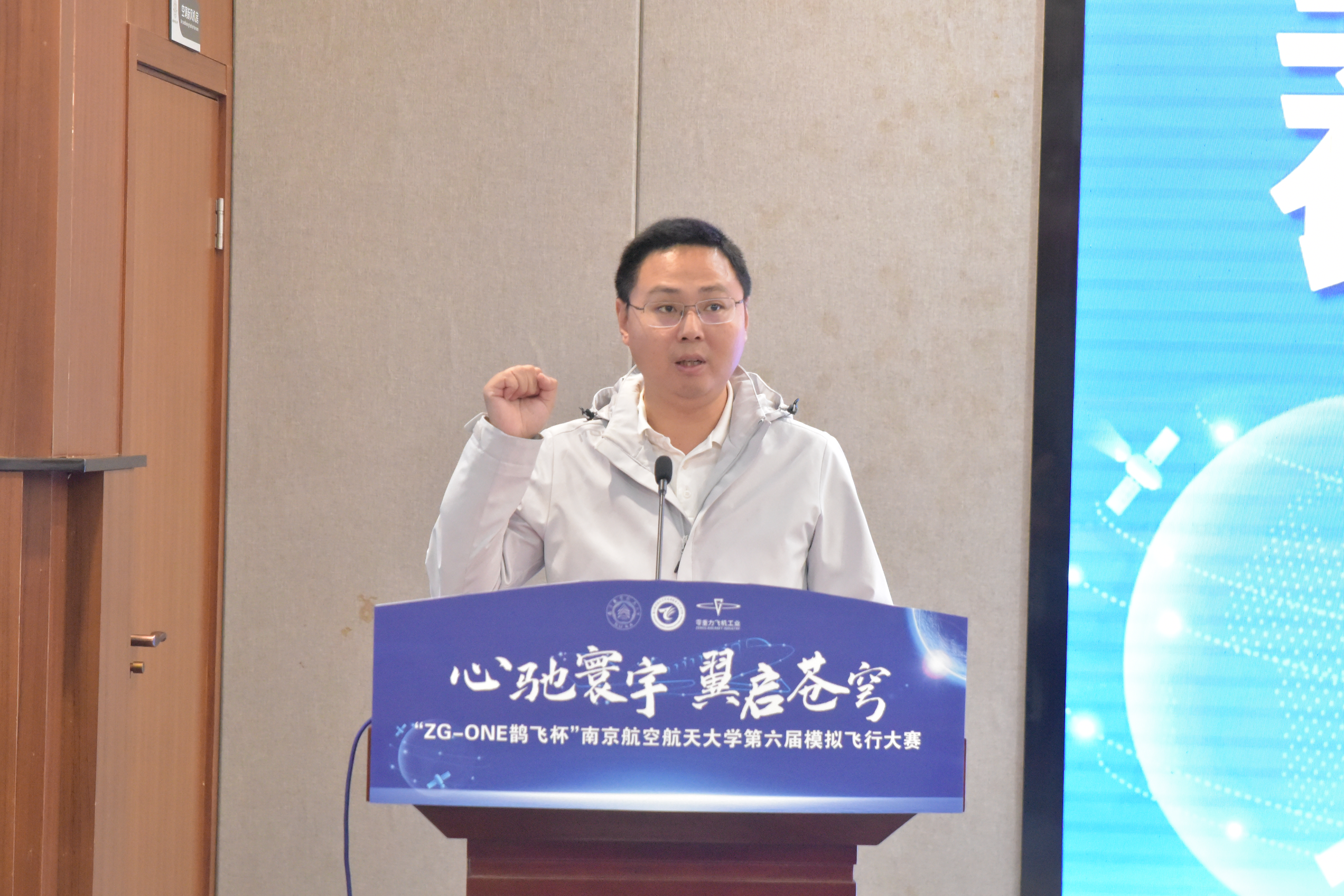 贾思源作嘉宾致辞。他代表零重力飞机工业对本届大赛的成功举办表示热烈的祝贺。他指出,在低空经济浪潮奔涌、航空器形态日益多元的今天,同学们通过模拟飞行所锤炼的空间感知能力、情景意识和对飞行原理的深刻理解,正是未来驾驭航空器、构建立体智慧交通体系所必备的核心素养。他勉励全体同学传承南航人扎实严谨的作风,同时勇于拥抱变革,以赛促学、以赛促训,在勤学苦练中持续精进,早日成长为能够定义未来天空、担当行业重任的一流飞行人才。