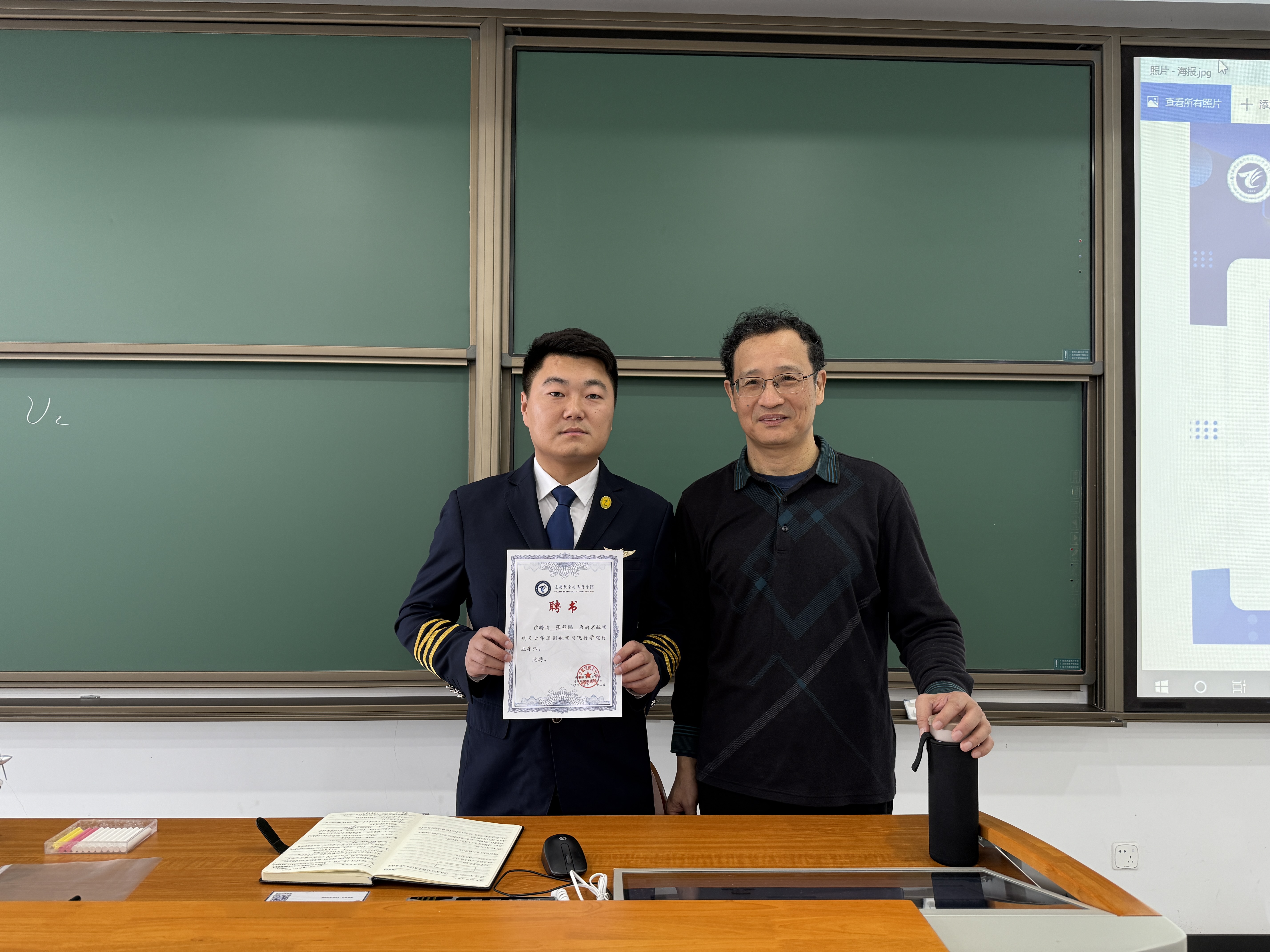 讲座期间,通用航空与飞行学院向张程鹏颁发了行业导师聘书,正式聘请其为学院行业导师。这一举措进一步深化了学院与行业企业的合作,为飞行人才培养注入了新的专业力量。