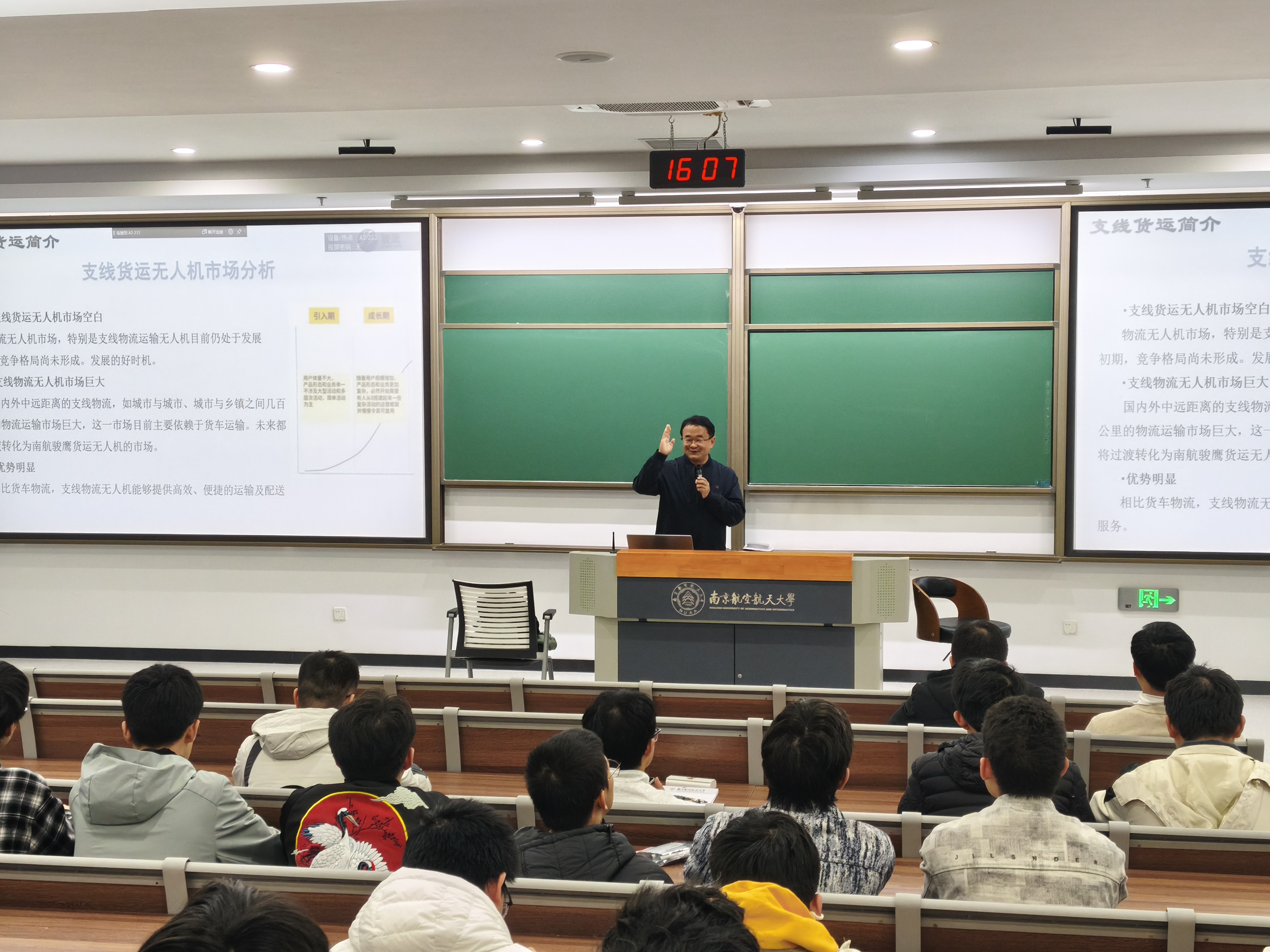 为深化本科新生对低空经济领域前沿技术的认知,搭建校企协同育人桥梁,12月2日,通用航空与飞行学院邀请云南骏鹰航空科技有限公司创始人殷健茗,为无人驾驶航空器系统工程和低空技术与工程专业本科生带来题为“支线货运无人机设计”的专题讲座。讲座在天目湖校区T2213教室举行,学院相关专业师生共同参与。