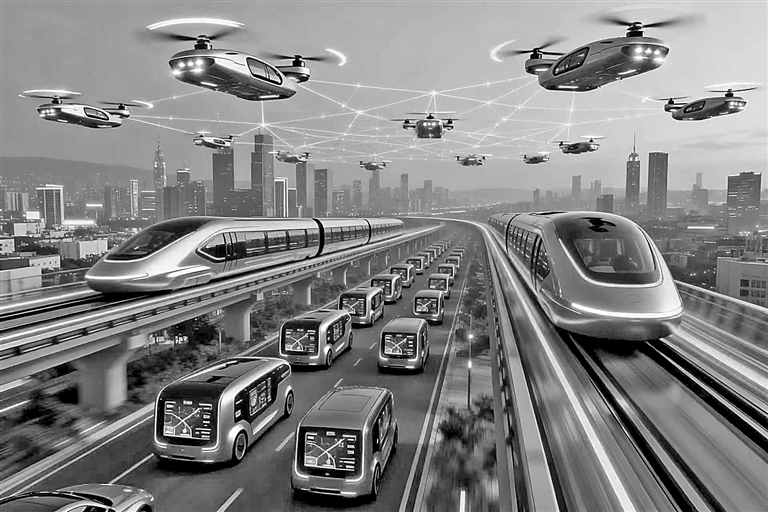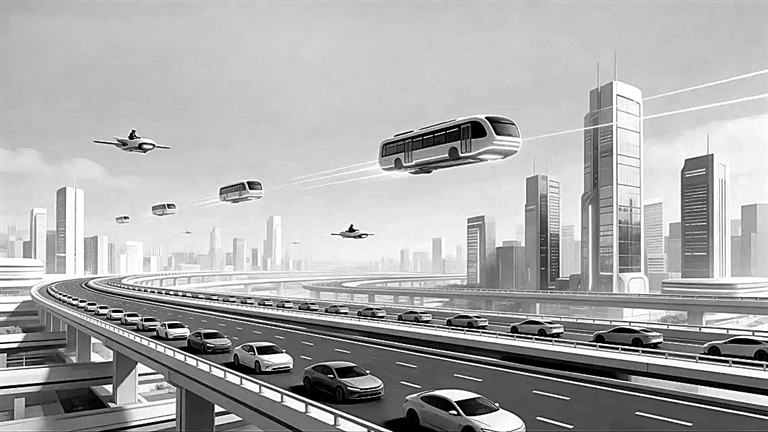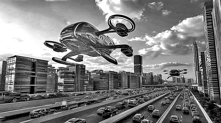 清晨7点,社区顶楼的圆形起降坪上,一架线条流畅的银白色电动飞行器已静候多时。走进舱内,悦耳的声音响起:“本次行程预计飞行时间15分钟。”
